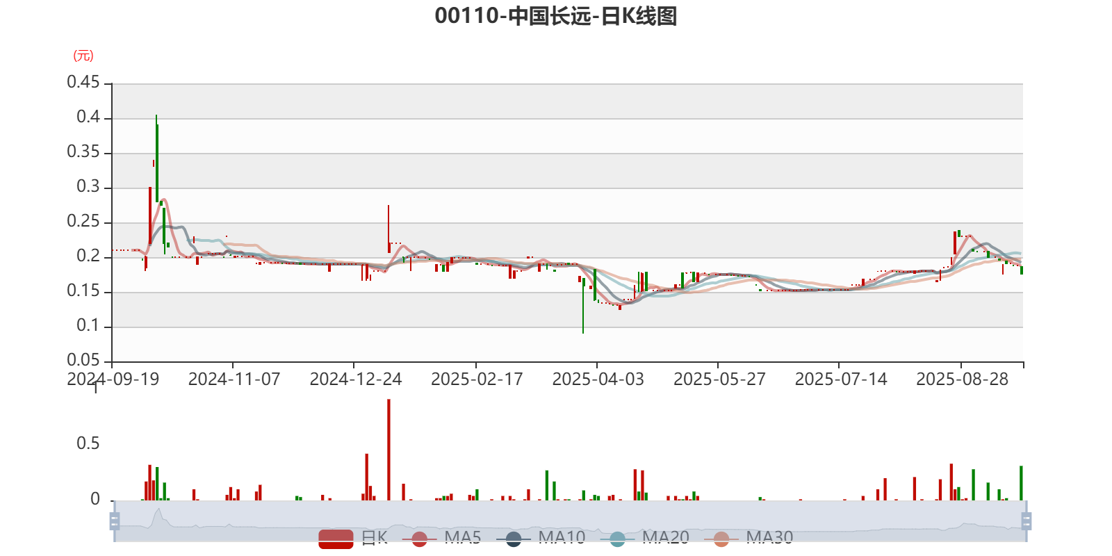 中证智能财讯中国长远(00110)9月19日披露2025年中期报告。报告期内,公司实现营业收入4054.8万港元,同比增长17.51%;归母净利润亏损656万港元,上年同期亏损675.3万港元;经营活动产生的现金流量净额为161.4万港元,上年同期为-775.9万港元;据报告显示,中国长远基本每股收益为-0.0261港元。