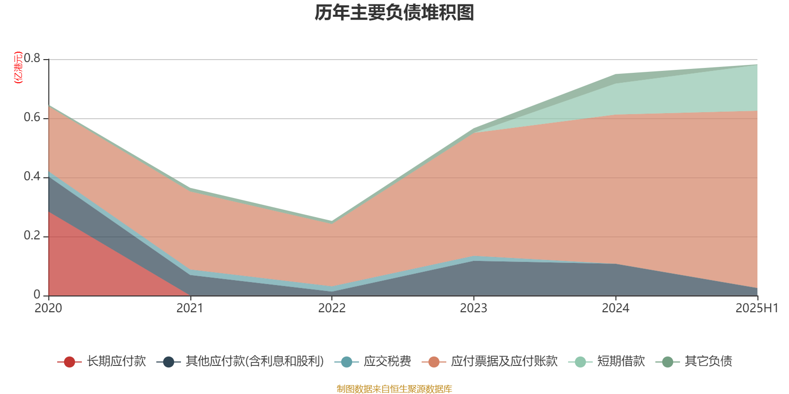 负债重大变化方面,截至2025年上半年,公司应付票据及应付账款较上期末增加18.76%,占公司总资产比重上升14.44个百分点;其他应付款(含利息和股利)较上期末减少76.19%,占公司总资产比重下降13.4个百分点;短期借款较上期末增加47.69%,占公司总资产比重上升7.91个百分点;合同负债较上期末减少100%,占公司总资产比重下降4.43个百分点。