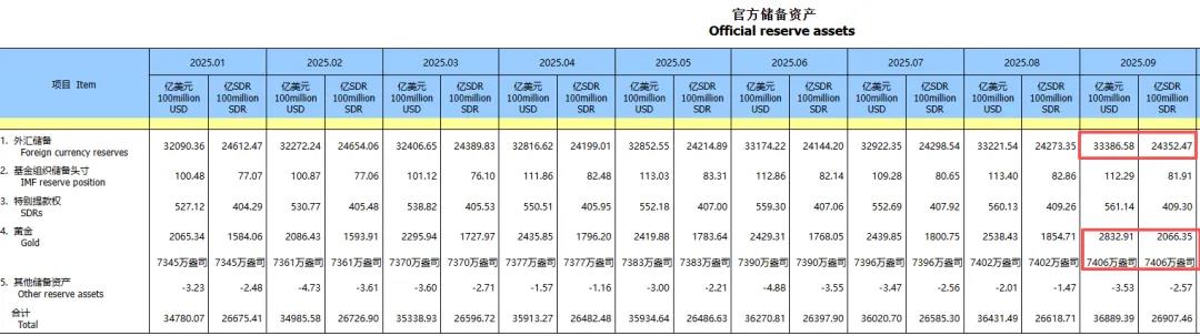 10月7日,央行数据显示,中国9月末黄金储备7406万盎司(约2303.523吨),环比增加4万盎司(约1.24吨),为连续第11个月增持黄金。8月末黄金储备7402万盎司。