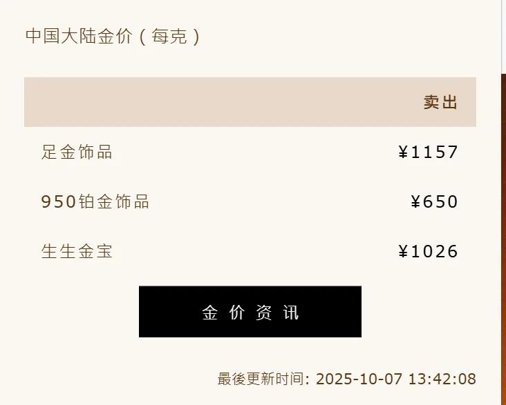 随着国际金价近日大涨,国内黄金饰品价格也水涨船高。从多家黄金珠宝品牌公布的足金首饰价格来看,截至目前,周生生足金饰品价格涨至1157元/克,周大福、六福珠宝、潮宏基等足金饰品价格为1155元/克,较10月1日的1129元/克上调26元/克。