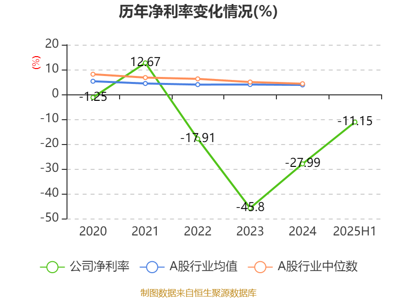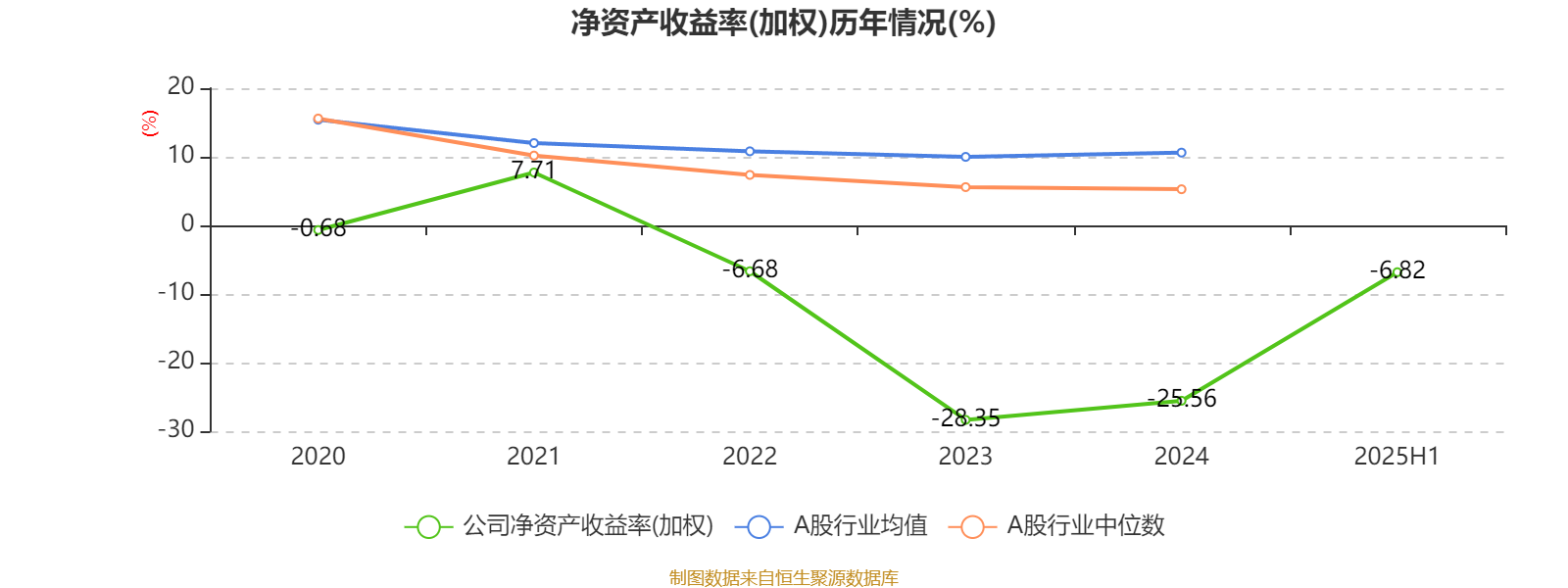 2025年上半年,公司平均净资产收益率为-6.82%,较上年同期上升2.41个百分点。