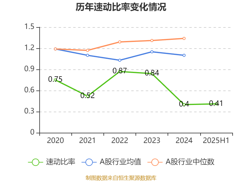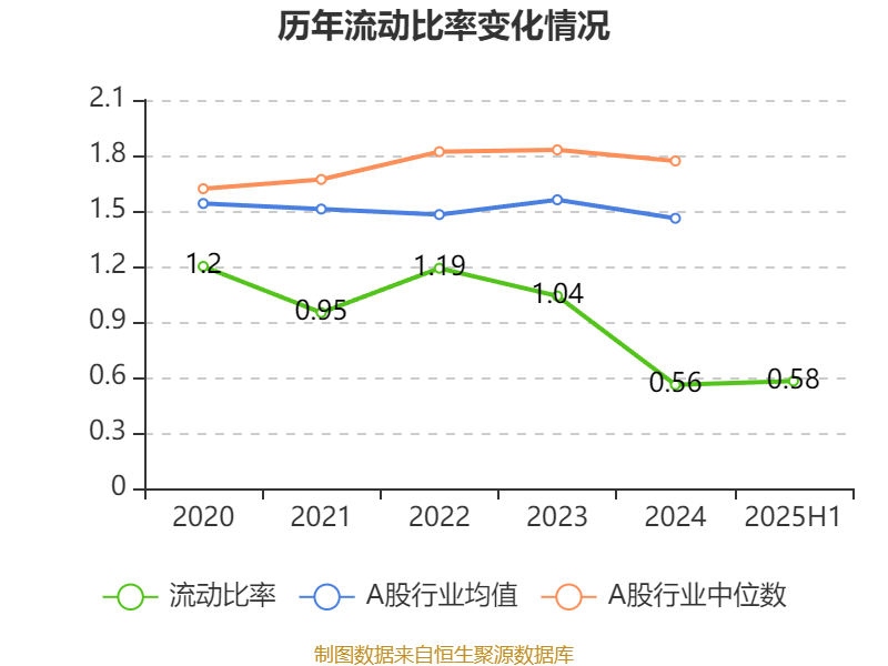2025年上半年,公司流动比率为0.58,速动比率为0.41。