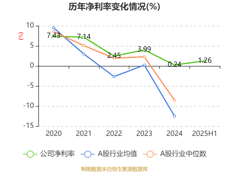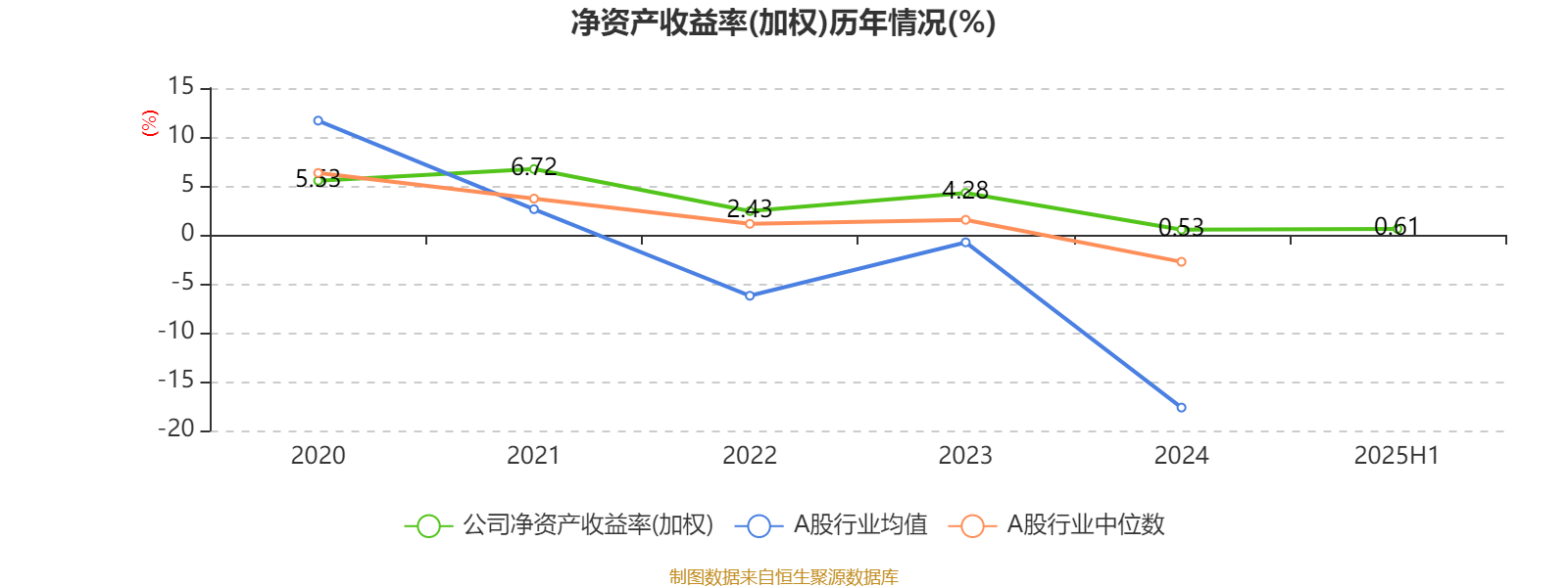 2025年上半年,公司平均净资产收益率为0.61%,较上年同期下降0.48个百分点。