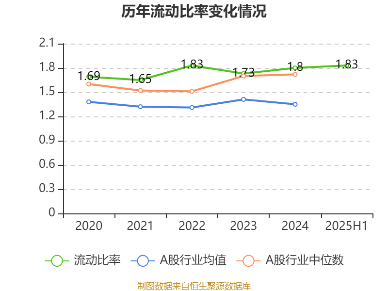 2025年上半年,公司流动比率为1.83,速动比率为0.51。