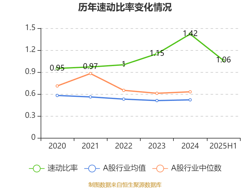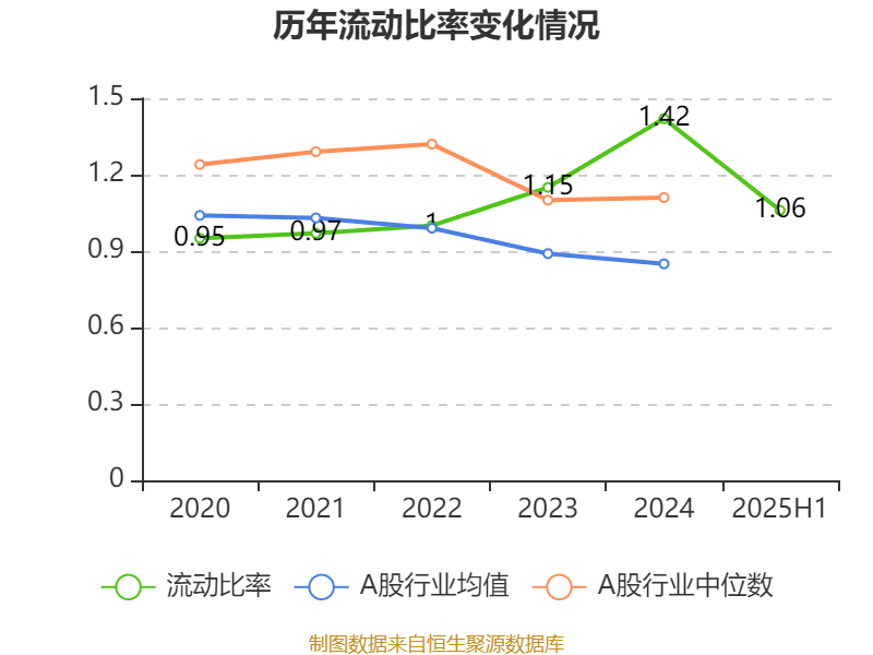 2025年上半年,公司流动比率为1.06,速动比率为1.06。