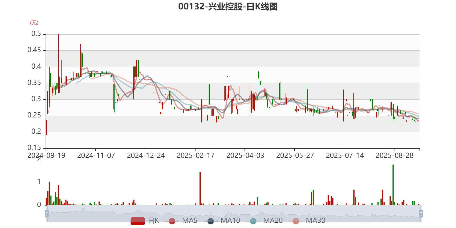 以9月19日收盘价计算,兴业控股目前市盈率(TTM)约157倍,市净率(TTM)约0.36倍,市销率(TTM)约0.5倍。