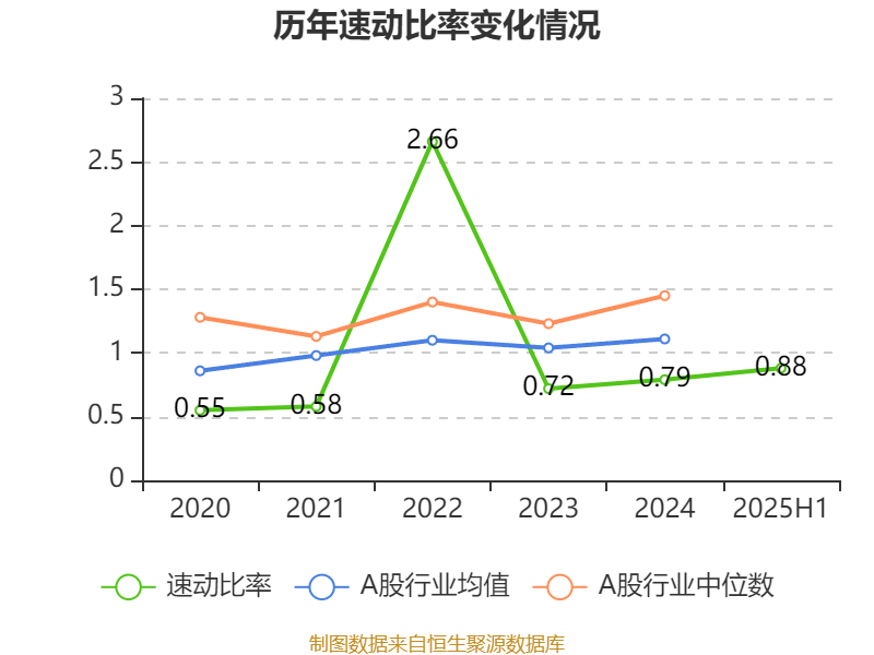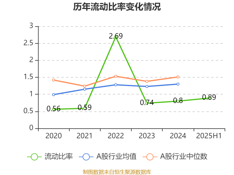2025年上半年,公司流动比率为0.89,速动比率为0.88。