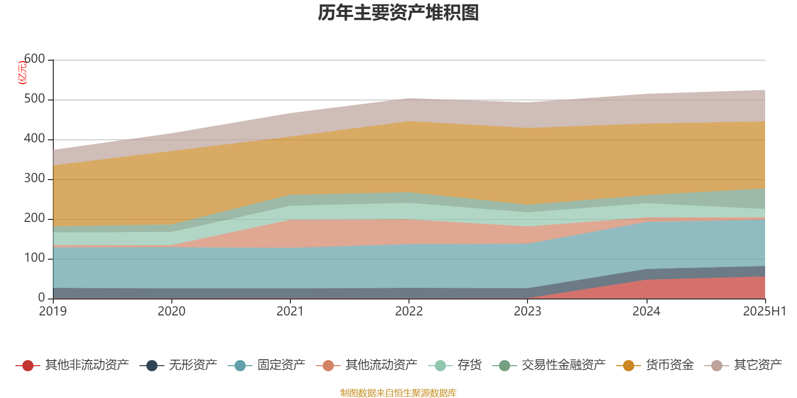 资产重大变化方面,截至2025年上半年,公司交易性金融资产较上期末增加156.16%,占公司总资产比重上升5.96个百分点;存货较上期末减少42.05%,占公司总资产比重下降3个百分点;货币资金较上期末减少6.32%,占公司总资产比重下降2.8个百分点;其他非流动资产较上期末增加17.09%,占公司总资产比重上升1.38个百分点。