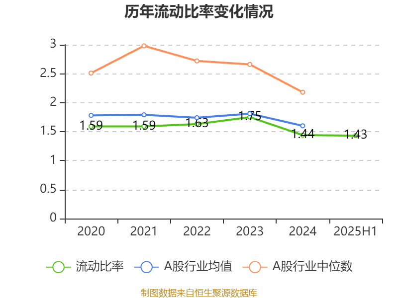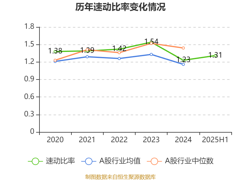 2025年上半年,公司流动比率为1.43,速动比率为1.31。