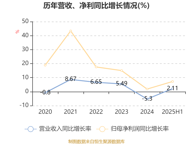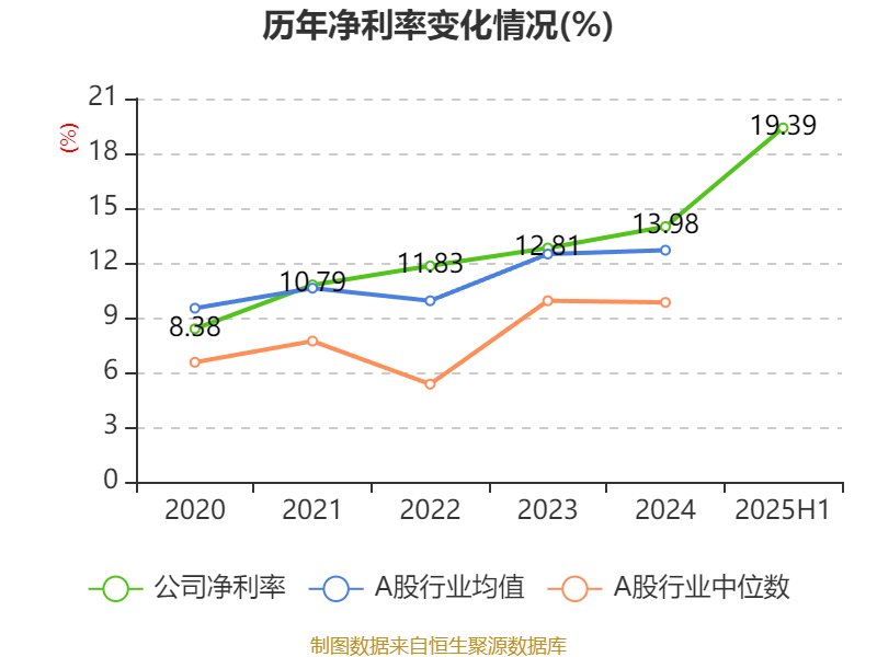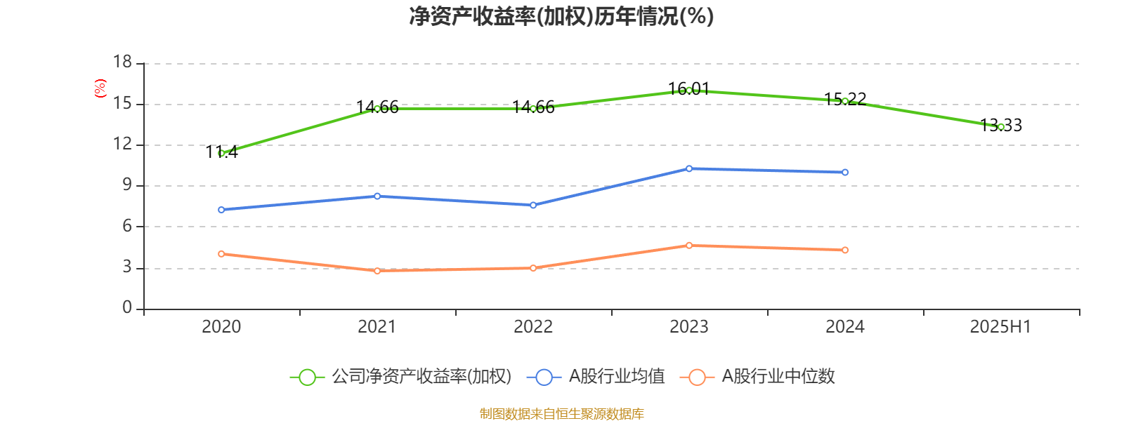 2025年上半年,公司平均净资产收益率为13.33%,较上年同期上升0.33个百分点。