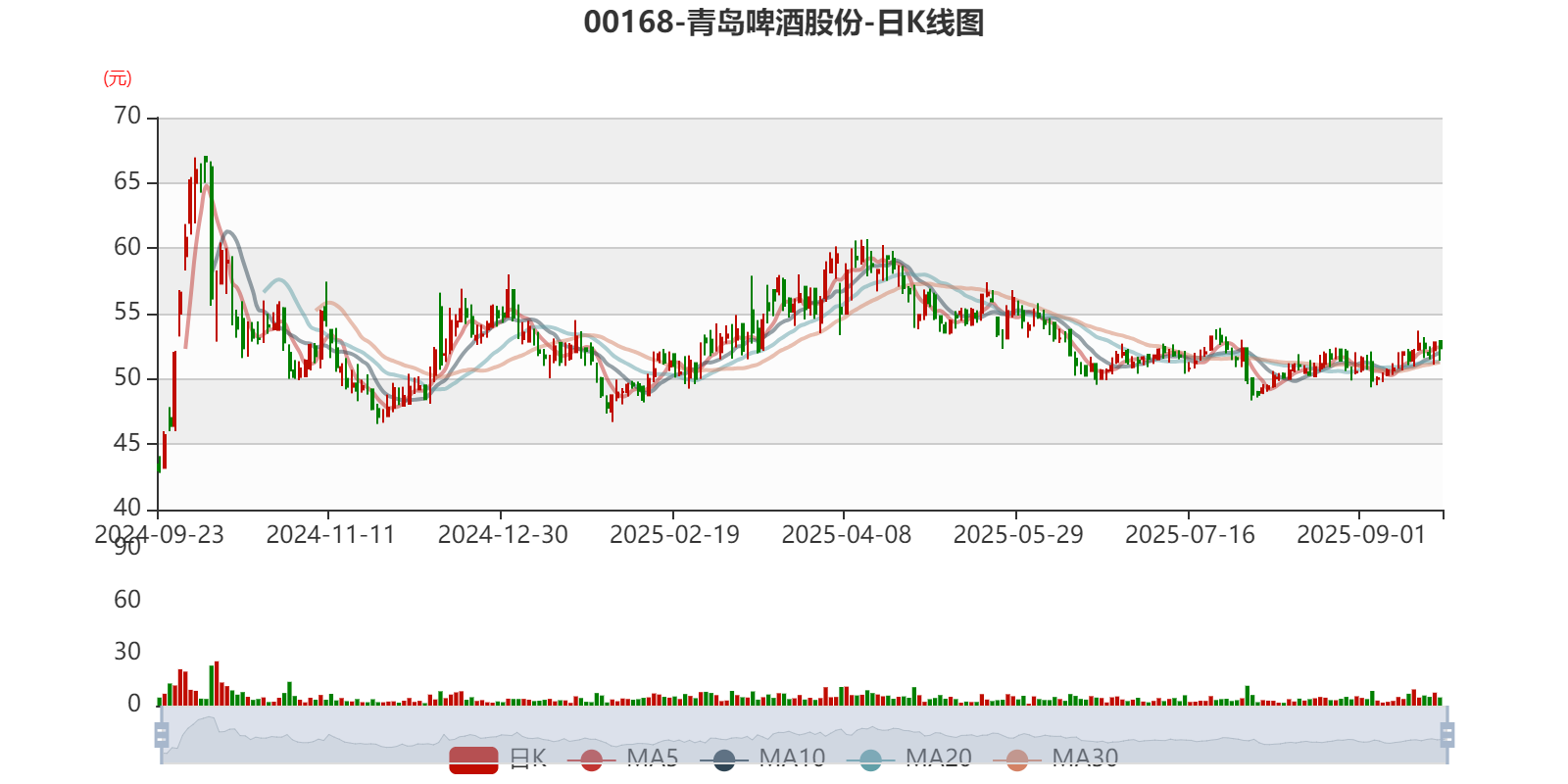 以9月22日收盘价计算,青岛啤酒股份目前市盈率(TTM)约14.13倍,市净率(TTM)约2.17倍,市销率(TTM)约2倍。