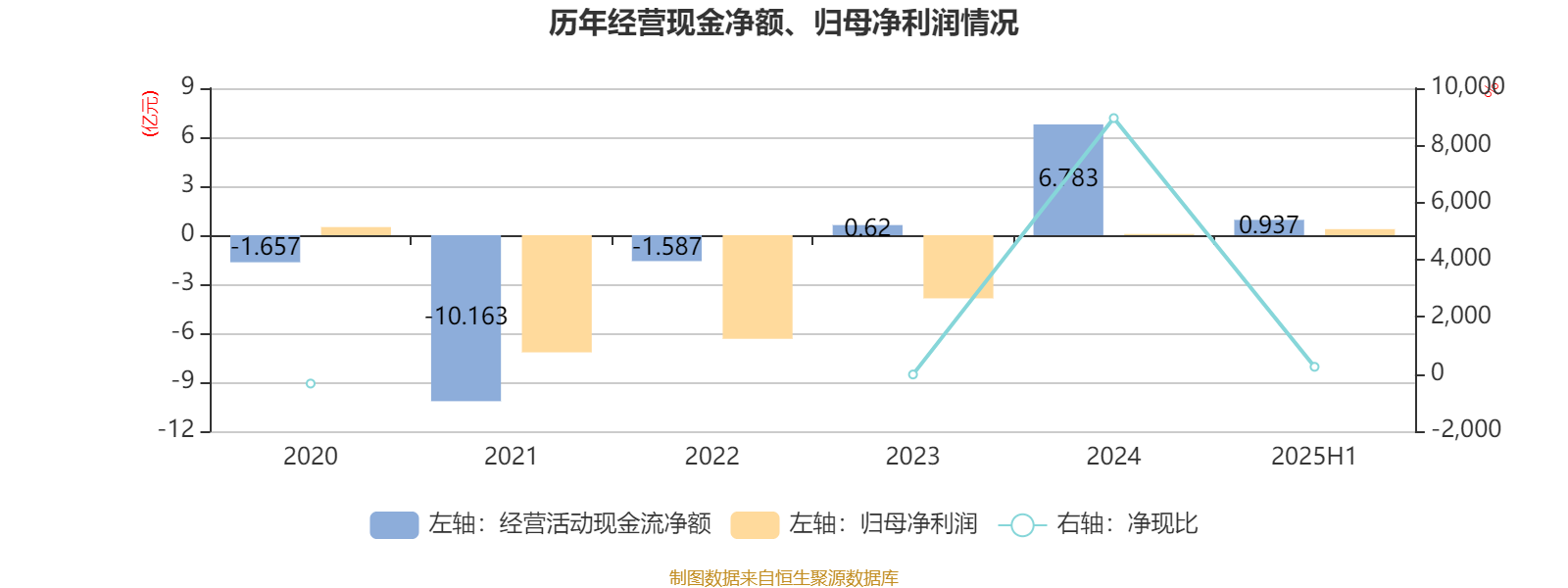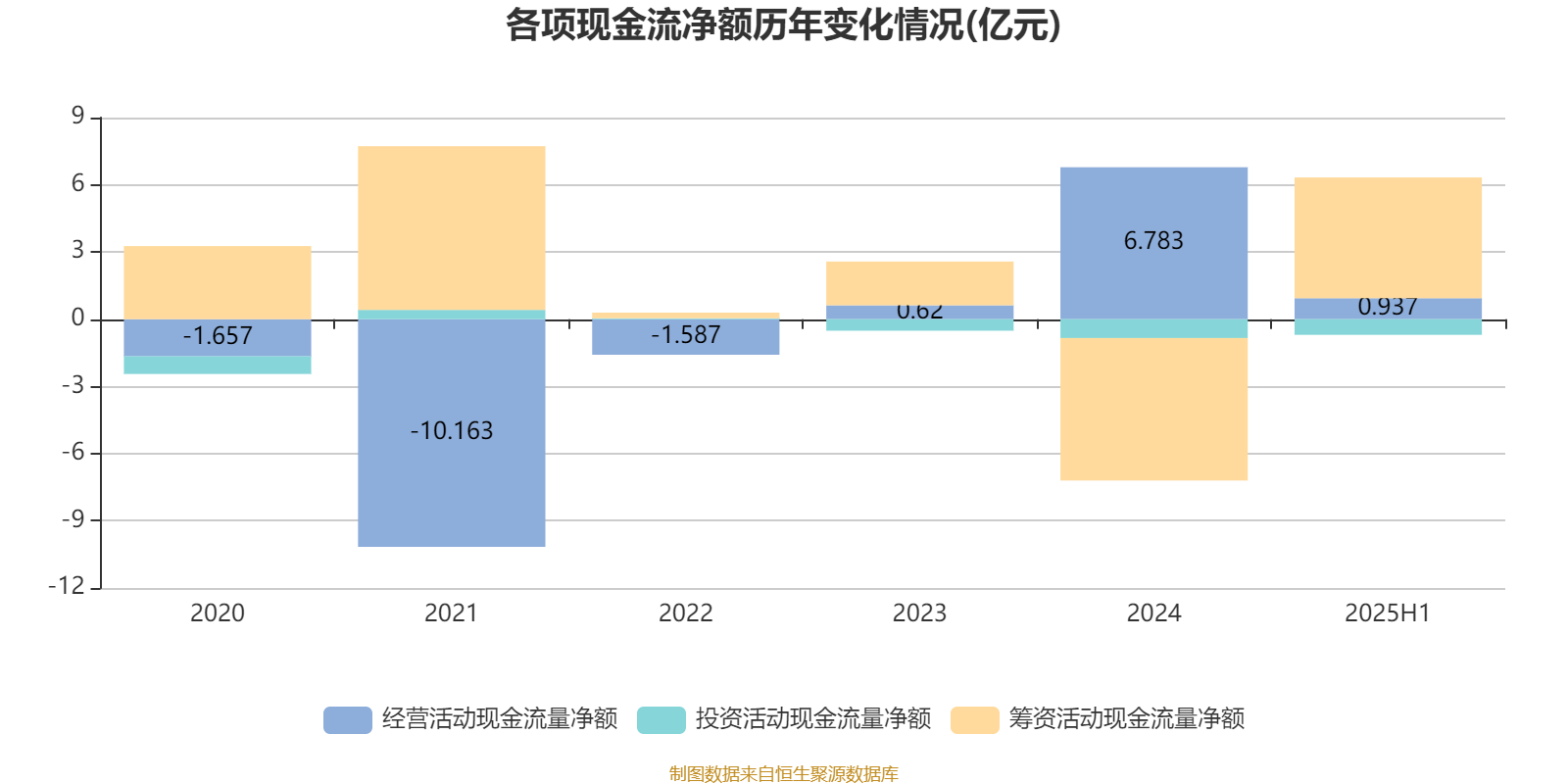 2025年上半年,公司经营活动现金流净额为9367.3万元;筹资活动现金流净额5.39亿元;投资活动现金流净额-6989.7万元。