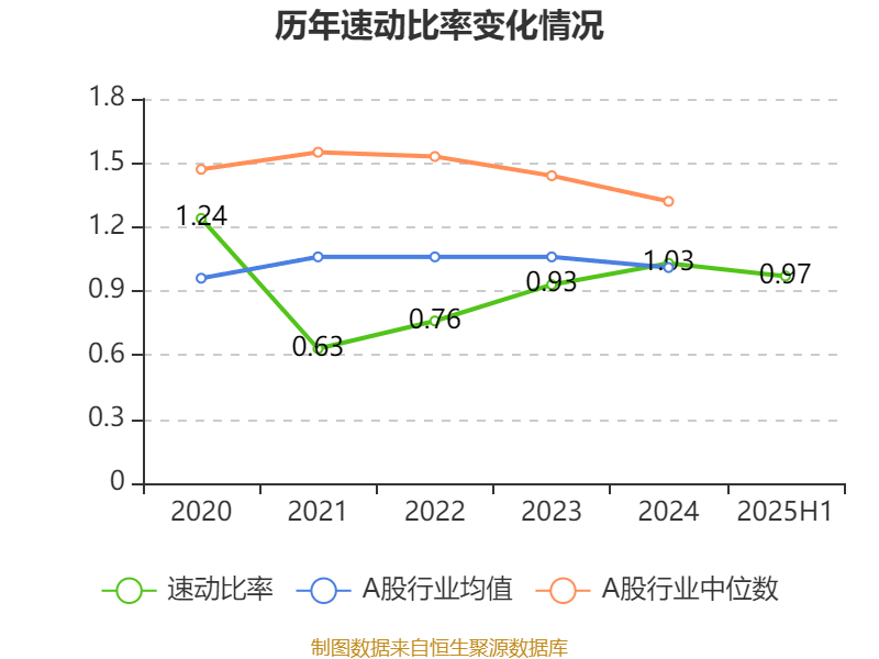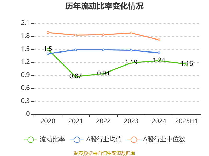 2025年上半年,公司流动比率为1.16,速动比率为0.97。