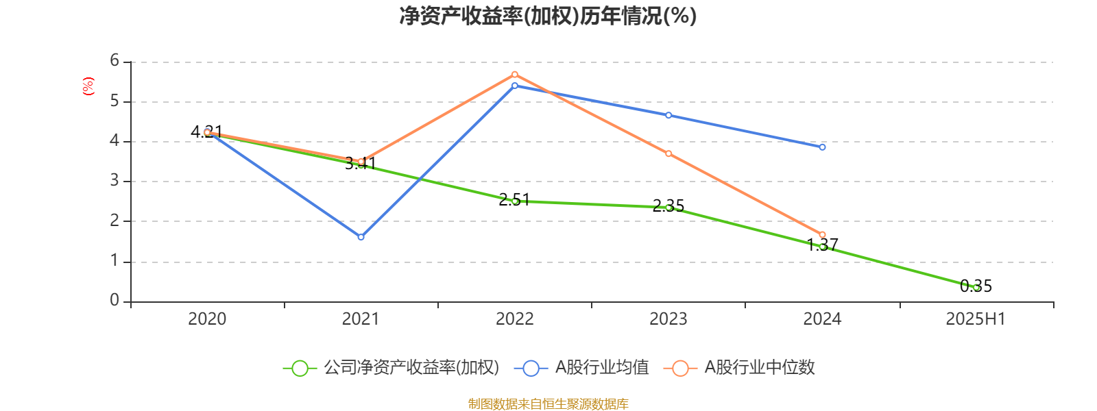 2025年上半年,公司平均净资产收益率为0.35%,较上年同期下降0.6个百分点。