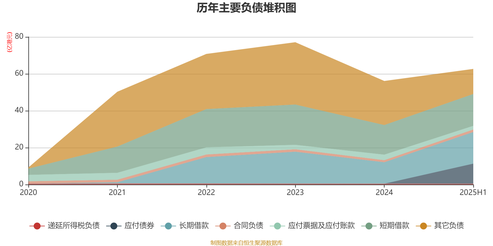 负债重大变化方面,截至2025年上半年,公司应付债券占公司总资产的11.94%,上期末为0;长期借款较上期末增加47.15%,占公司总资产比重上升4.87个百分点;应付票据及应付账款较上期末减少34.11%,占公司总资产比重下降1.42个百分点;短期借款较上期末增加7.69%,占公司总资产比重下降0.23个百分点。