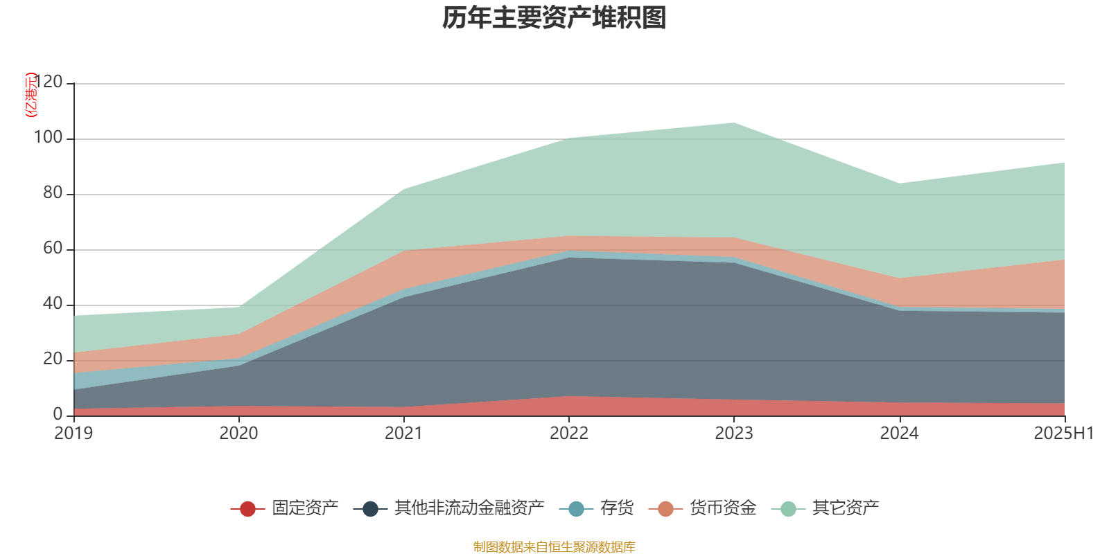 资产重大变化方面,截至2025年上半年,公司货币资金较上期末增加71.73%,占公司总资产比重上升7.1个百分点;其他非流动金融资产较上期末减少1.05%,占公司总资产比重下降3.64个百分点;固定资产较上期末减少7.12%,占公司总资产比重下降0.83个百分点;其他应收款(含利息和股利)较上期末减少100%,占公司总资产比重下降0.32个百分点。