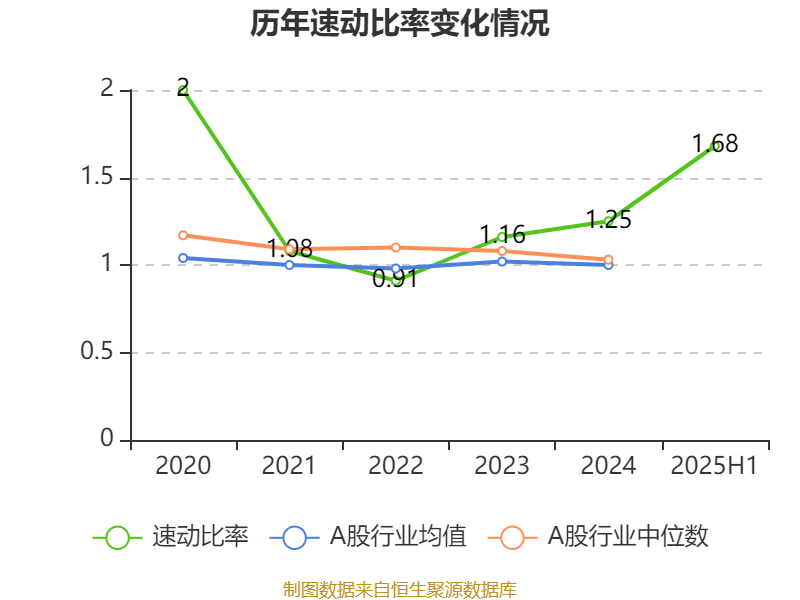 2025年上半年,公司流动比率为1.72,速动比率为1.68。