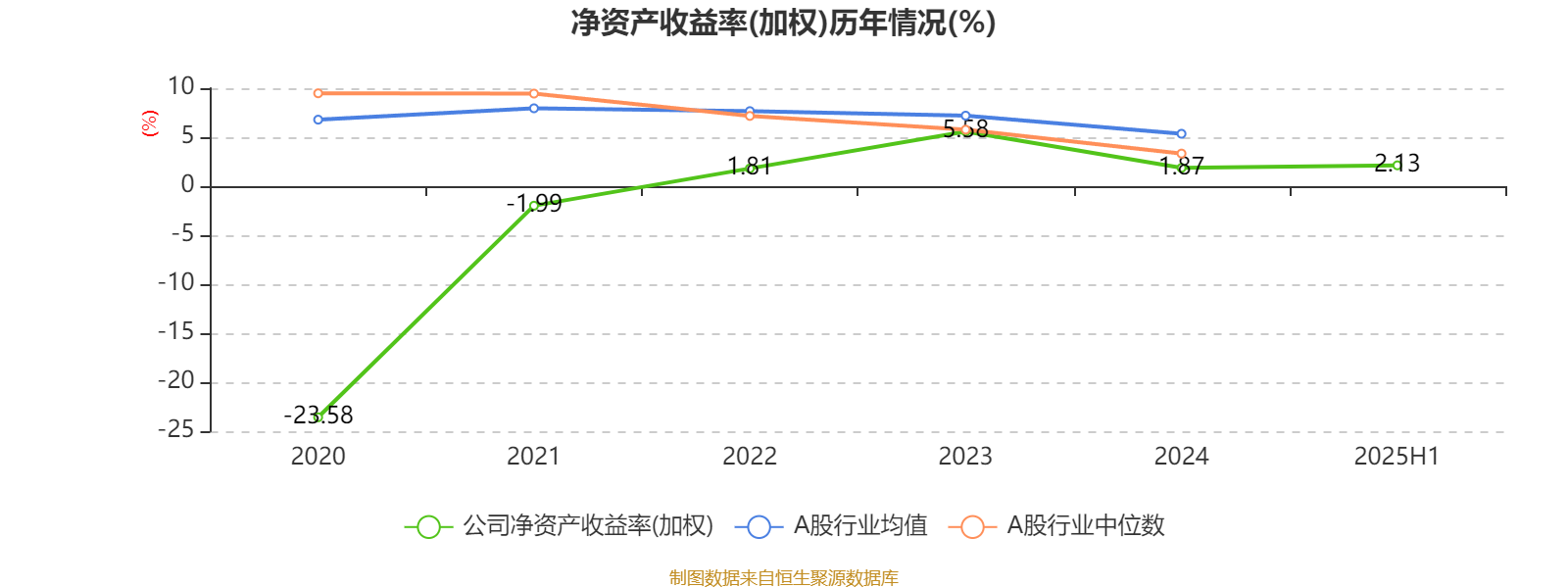 2025年上半年,公司平均净资产收益率为2.13%,较上年同期上升1.89个百分点。