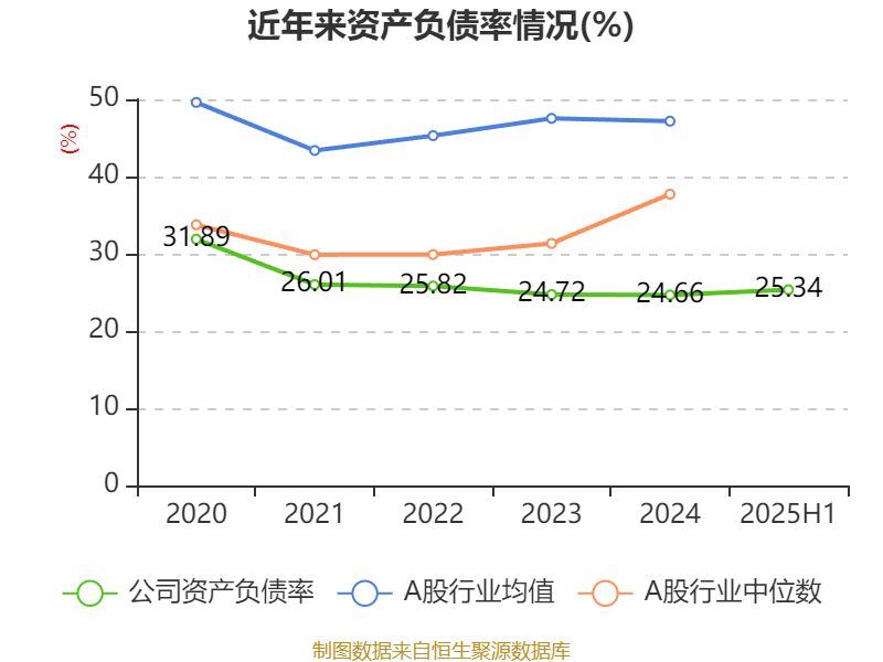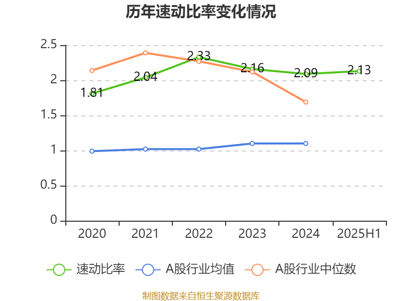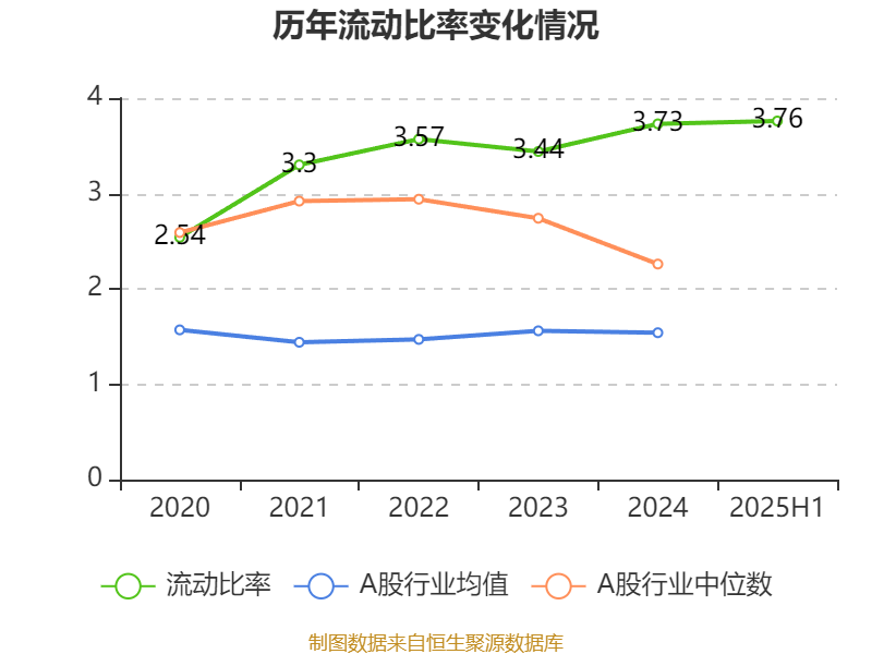 2025年上半年,公司流动比率为3.76,速动比率为2.13。