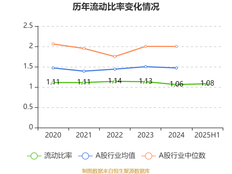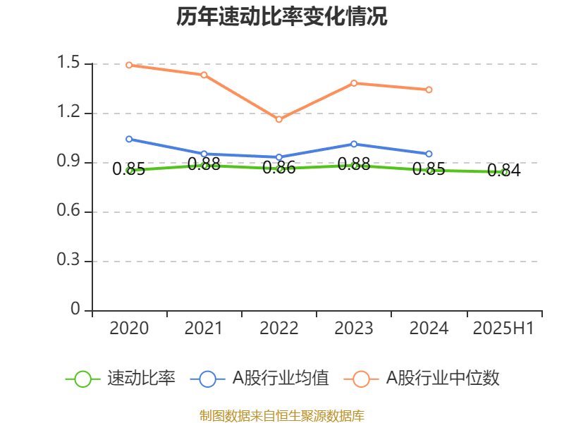 2025年上半年,公司流动比率为1.08,速动比率为0.84。