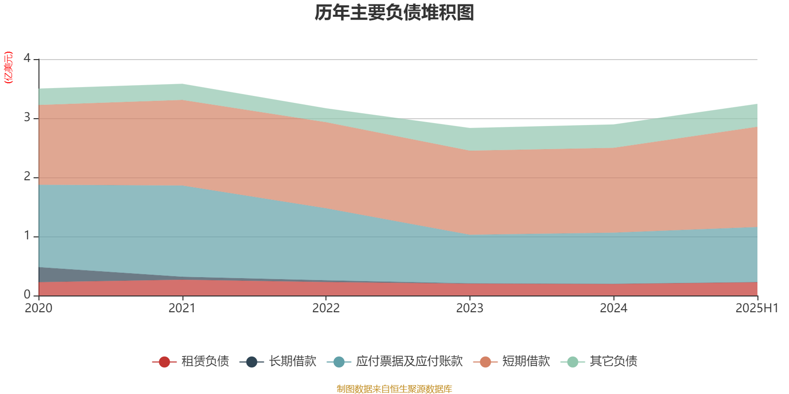 负债重大变化方面,截至2025年上半年,公司短期借款较上期末增加18.18%,占公司总资产比重上升3.09个百分点;租赁负债较上期末增加15.49%,占公司总资产比重上升0.31个百分点;应交税费较上期末减少3.69%,占公司总资产比重下降0.25个百分点;应付票据及应付账款较上期末增加7.58%,占公司总资产比重下降0.05个百分点。