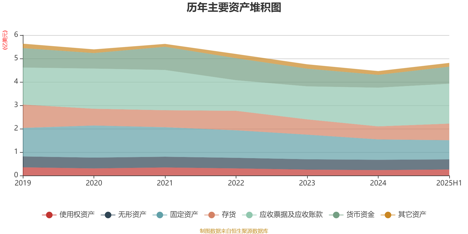 资产重大变化方面,截至2025年上半年,公司货币资金较上期末增加32.59%,占公司总资产比重上升2.82个百分点;固定资产较上期末减少6.22%,占公司总资产比重下降2.55个百分点;存货较上期末增加27.63%,占公司总资产比重上升2.29个百分点;应收票据及应收账款较上期末增加3.05%,占公司总资产比重下降1.65个百分点。
