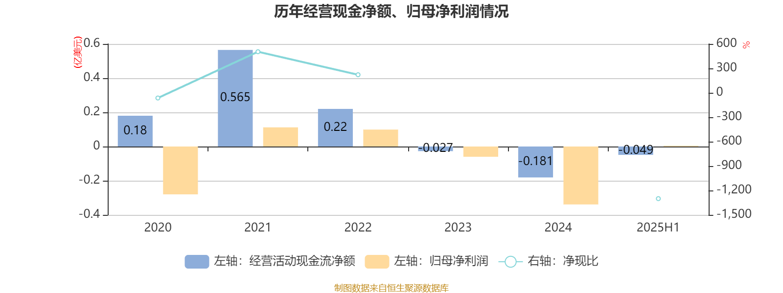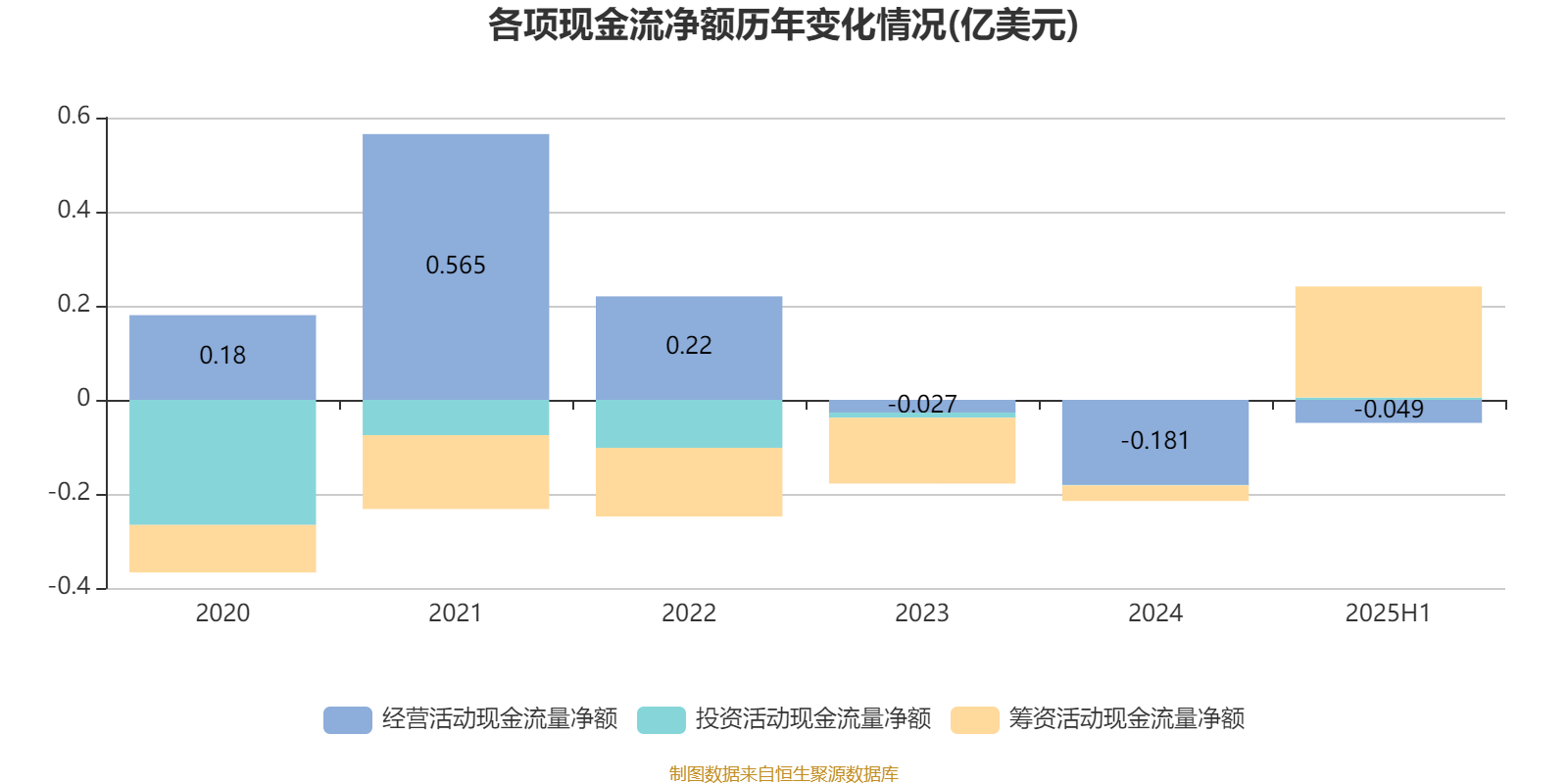2025年上半年,公司经营活动现金流净额为-485.1万美元;筹资活动现金流净额2356.8万美元;投资活动现金流净额47.4万美元。