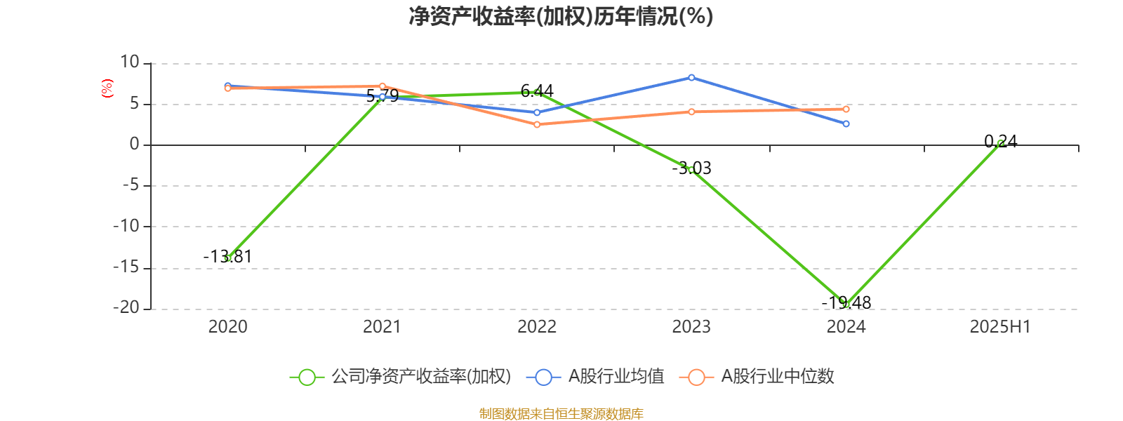 2025年上半年,公司平均净资产收益率为0.24%,较上年同期上升5.46个百分点。