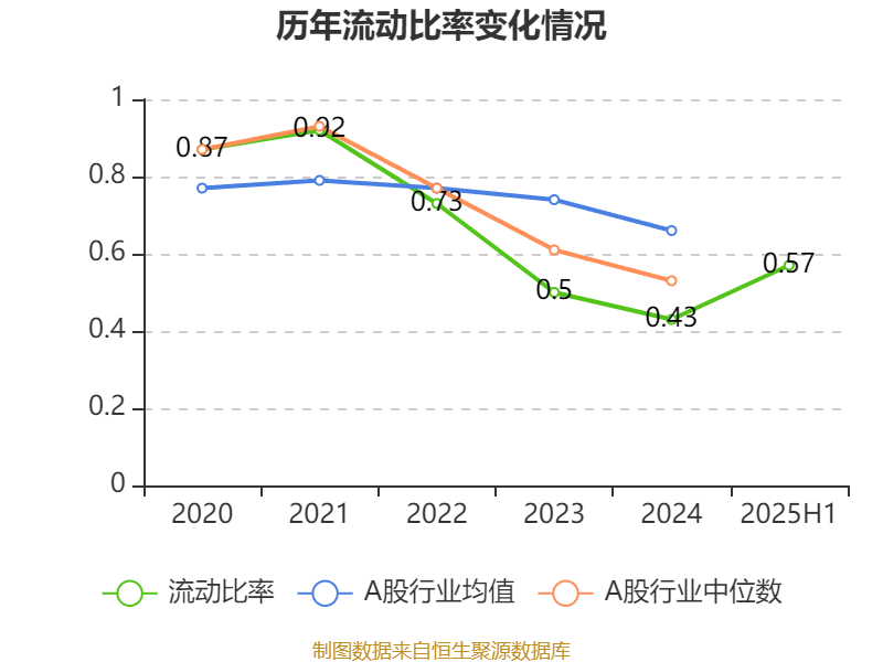 2025年上半年,公司流动比率为0.57,速动比率为0.41。