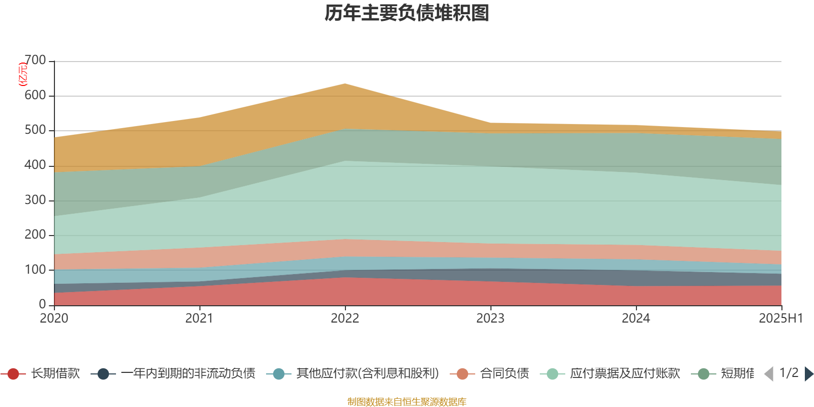 负债重大变化方面,截至2025年上半年,公司应付票据及应付账款较上期末减少8.95%,占公司总资产比重下降3.33个百分点;短期借款较上期末增加16.19%,占公司总资产比重上升1.64个百分点;一年内到期的非流动负债较上期末减少24.11%,占公司总资产比重下降1.55个百分点;其他应付款(含利息和股利)较上期末减少15%,占公司总资产比重下降0.74个百分点。