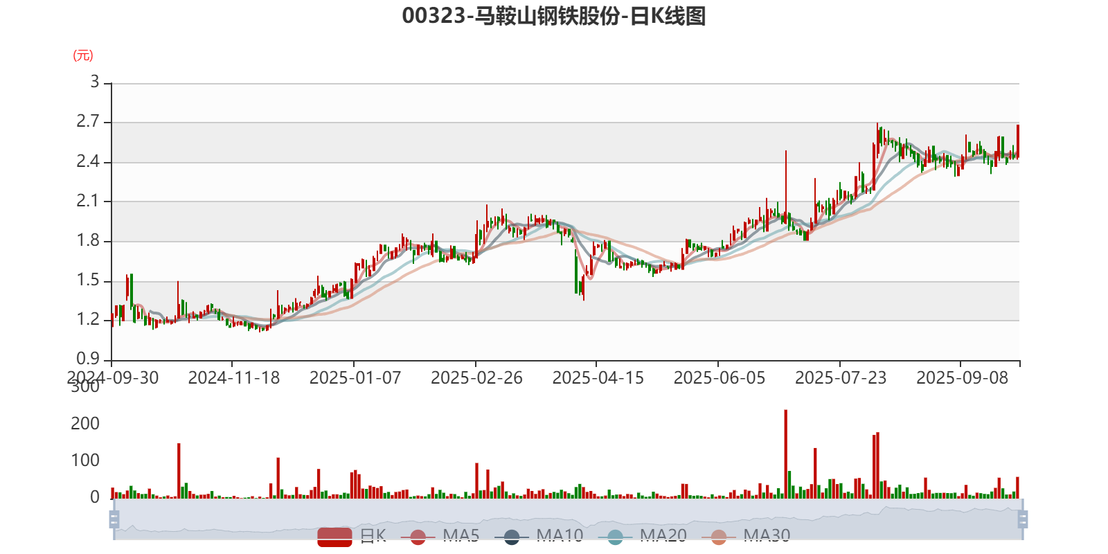 以9月29日收盘价计算,马鞍山钢铁股份目前市净率(TTM)约0.79倍,市销率(TTM)约0.24倍。
