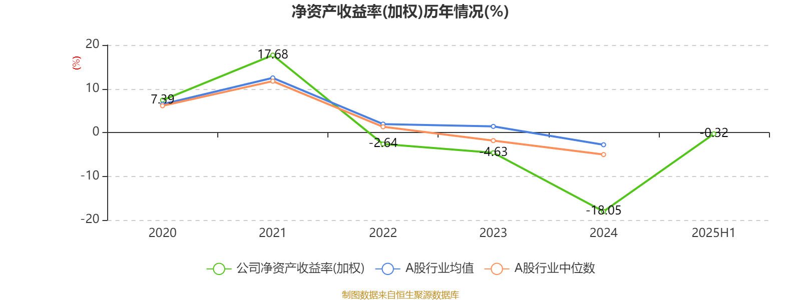2025年上半年,公司平均净资产收益率为-0.32%,较上年同期上升3.88个百分点。