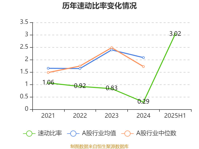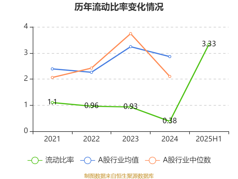 2025年上半年,公司流动比率为3.33,速动比率为3.02。