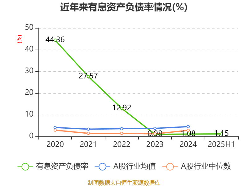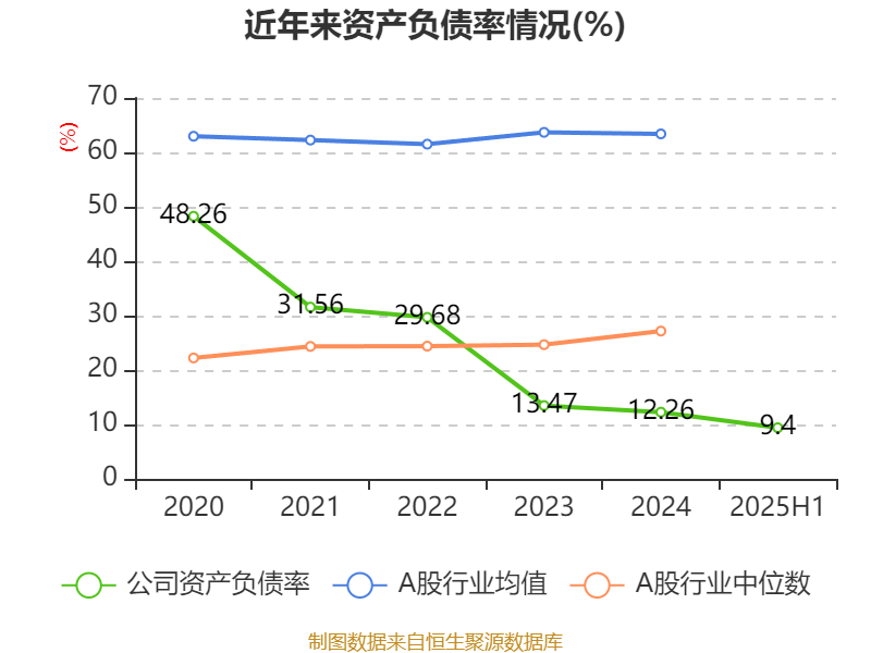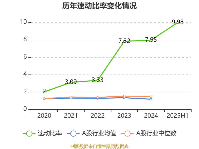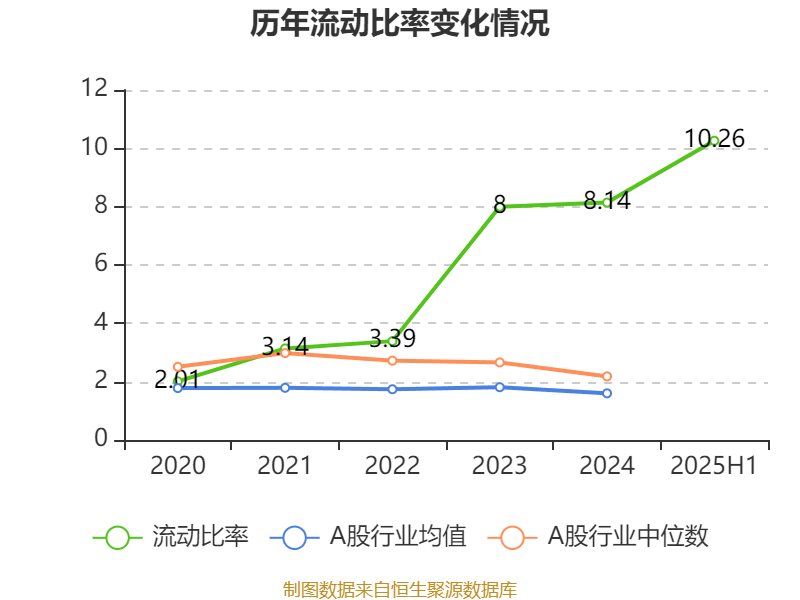 2025年上半年,公司流动比率为10.26,速动比率为9.98。