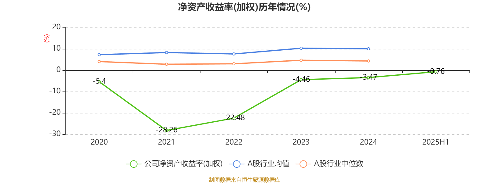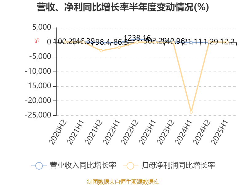 2025年上半年,公司平均净资产收益率为-0.76%,较上年同期上升5.06个百分点。