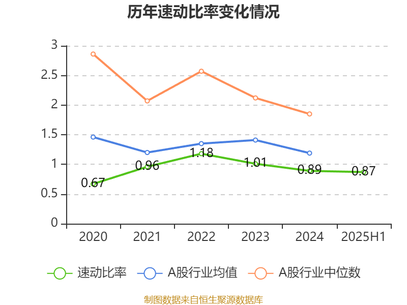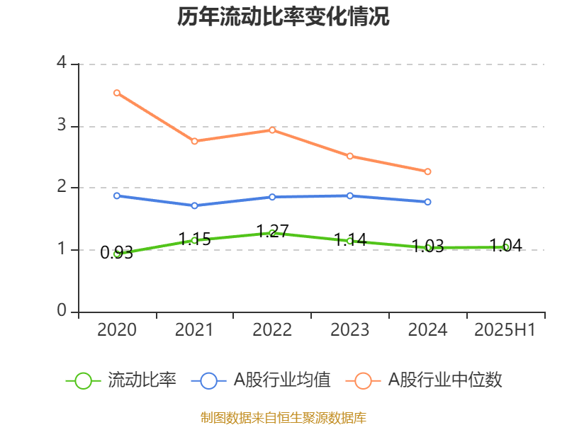 2025年上半年,公司流动比率为1.04,速动比率为0.87。