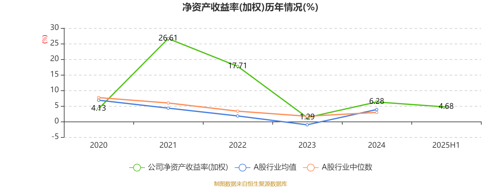 2025年上半年,公司平均净资产收益率为4.68%,较上年同期上升3.99个百分点。