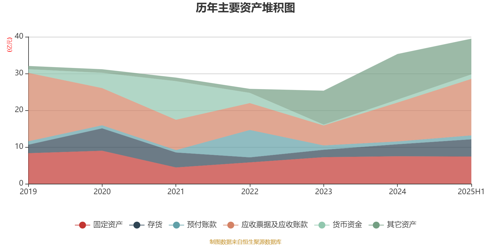 资产重大变化方面,截至2025年上半年,公司应收票据及应收账款较上期末增加45.08%,占公司总资产比重上升8.94个百分点;存货较上期末增加43.75%,占公司总资产比重上升2.64个百分点;固定资产较上期末减少1.13%,占公司总资产比重下降2.45个百分点;货币资金较上期末增加51.41%,占公司总资产比重上升0.81个百分点。