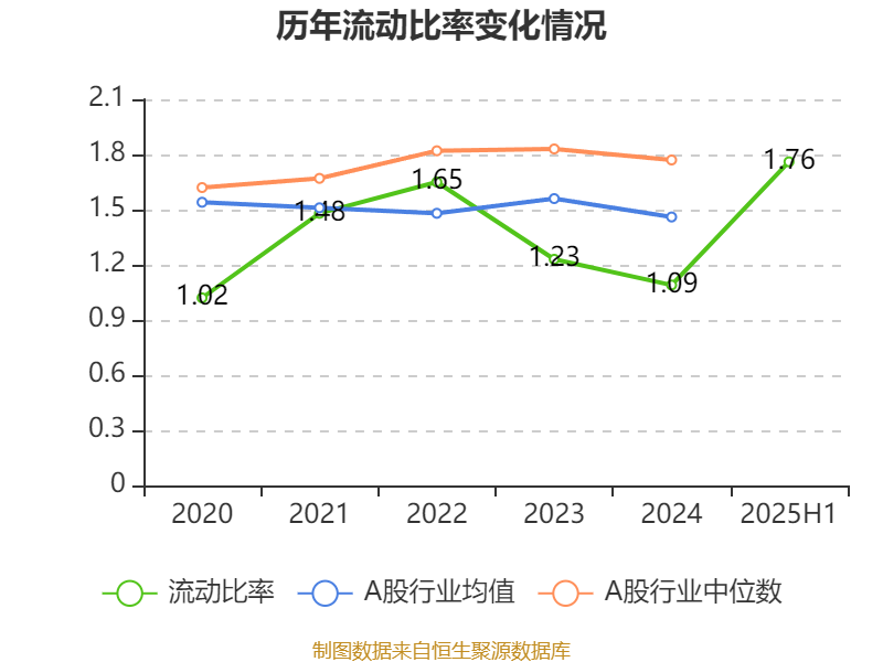 2025年上半年,公司流动比率为1.76,速动比率为1.66。