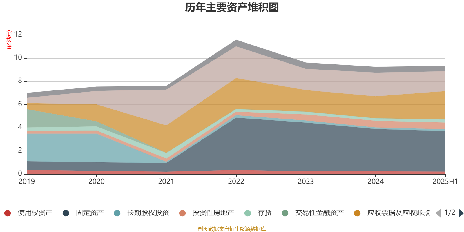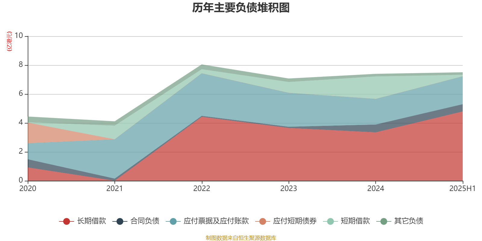 负债重大变化方面,截至2025年上半年,公司短期借款较上期末减少92.96%,占公司总资产比重下降15.68个百分点;长期借款较上期末增加43.06%,占公司总资产比重上升15.15个百分点;应付票据及应付账款较上期末增加8.65%,占公司总资产比重上升1.48个百分点;合同负债较上期末减少5.92%,占公司总资产比重下降0.39个百分点。