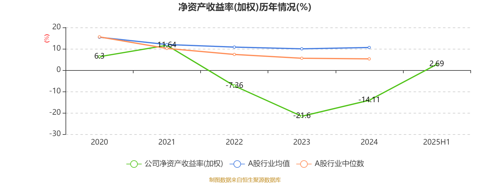 2025年上半年,公司平均净资产收益率为2.69%,较上年同期上升6.89个百分点。