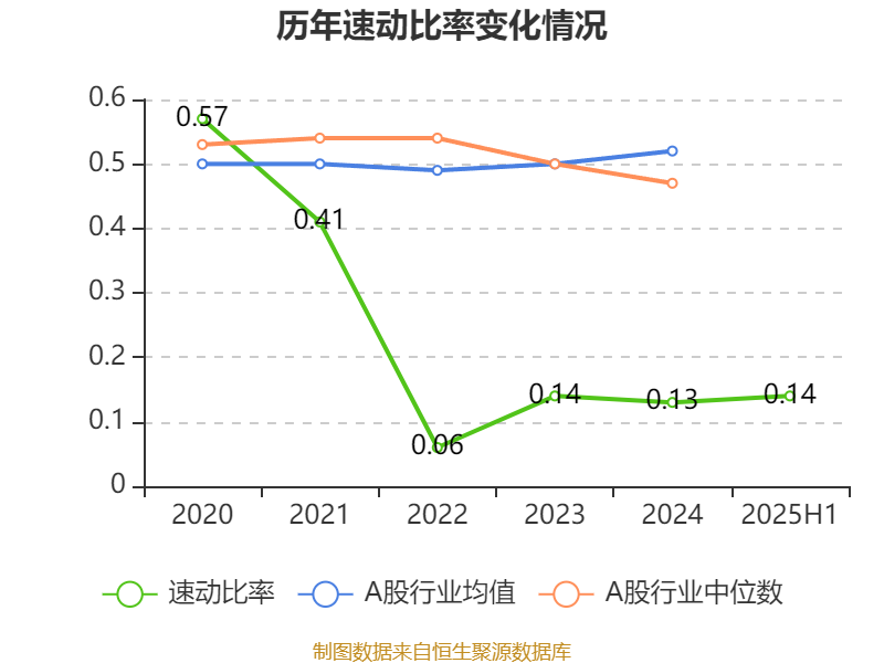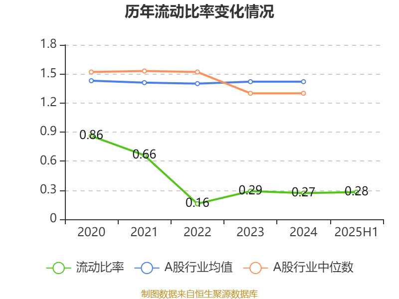 2025年上半年,公司流动比率为0.28,速动比率为0.14。