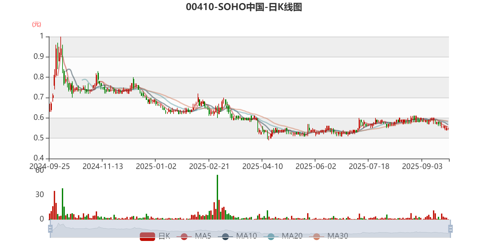 中证智能财讯 SOHO中国(00410)9月25日披露2025年中期报告。报告期内,公司实现营业收入6.9亿元,同比下降13.7%;归母净利润亏损9157.8万元,上年同期亏损1.08亿元;据报告显示,SOHO中国基本每股收益为-0.02元,平均净资产收益率为-0.26%。