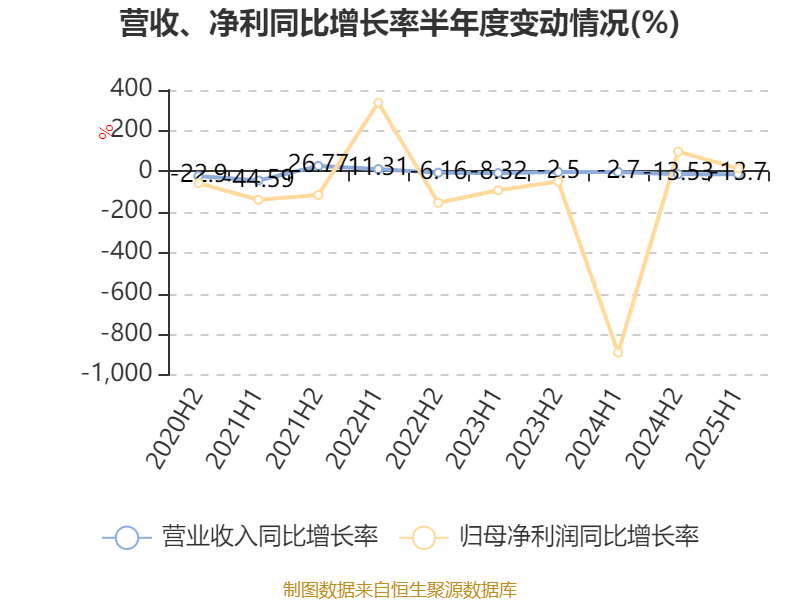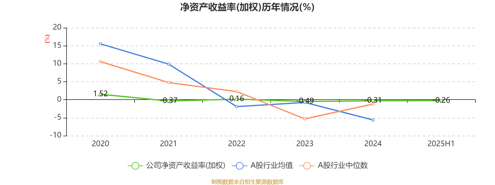 2025年上半年,公司平均净资产收益率为-0.26%,较上年同期上升0.04个百分点。