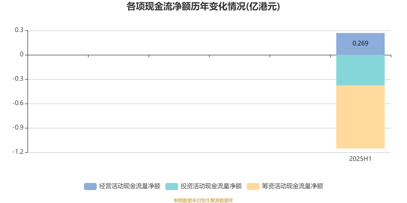 2025年上半年,公司经营活动现金流净额为2690.7万港元;筹资活动现金流净额-7771.5万港元;投资活动现金流净额-3768.9万港元。