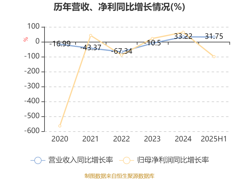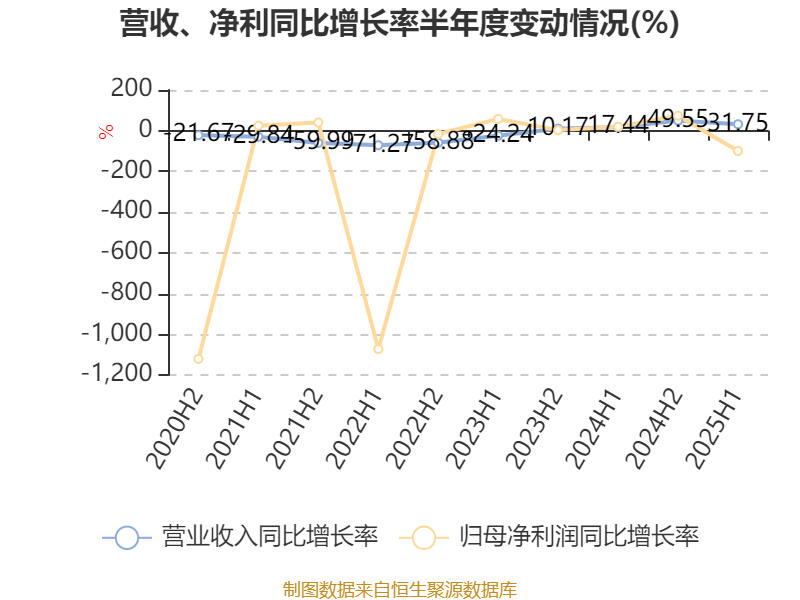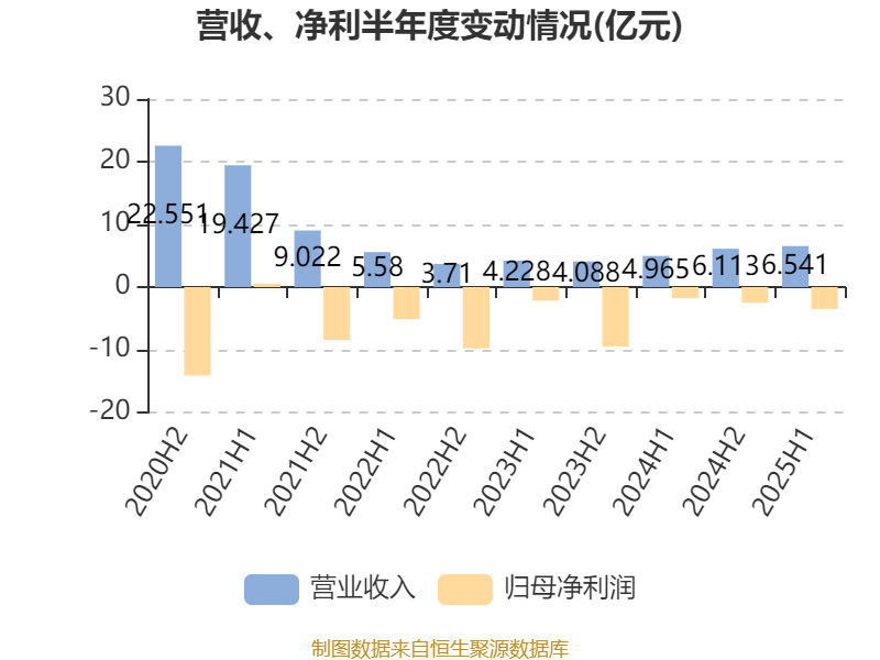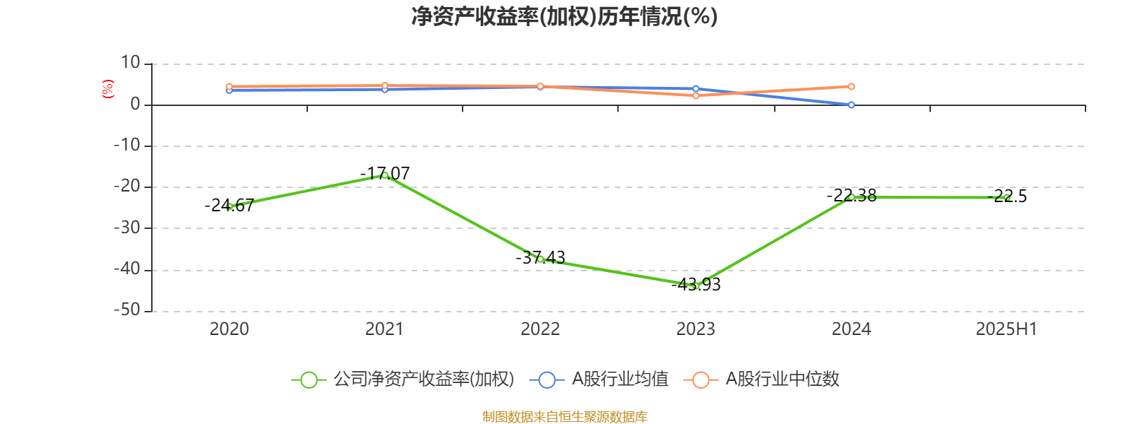 2025年上半年,公司平均净资产收益率为-22.5%,较上年同期下降13.79个百分点。