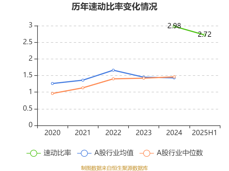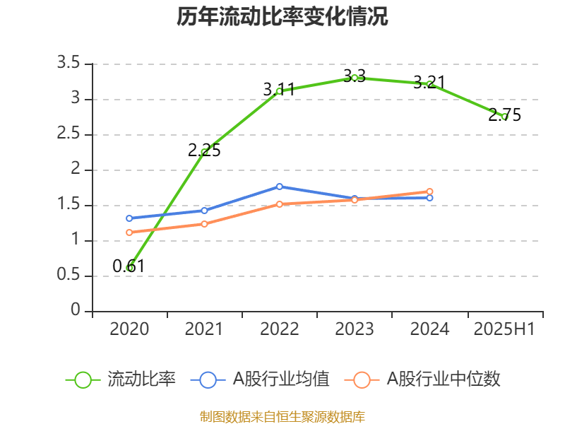 2025年上半年,公司流动比率为2.75,速动比率为2.72。