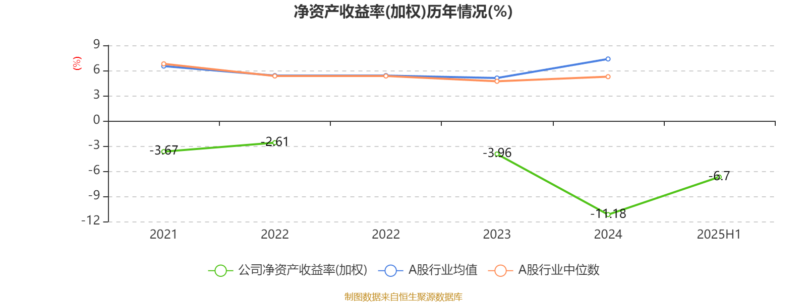 2025年上半年,公司平均净资产收益率为-6.7%,较上年同期下降1.91个百分点。