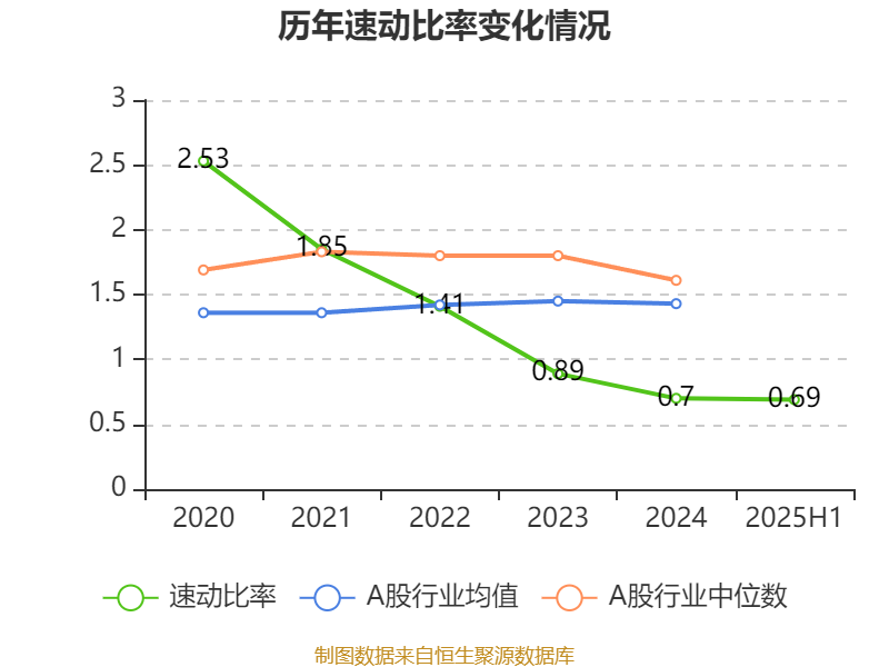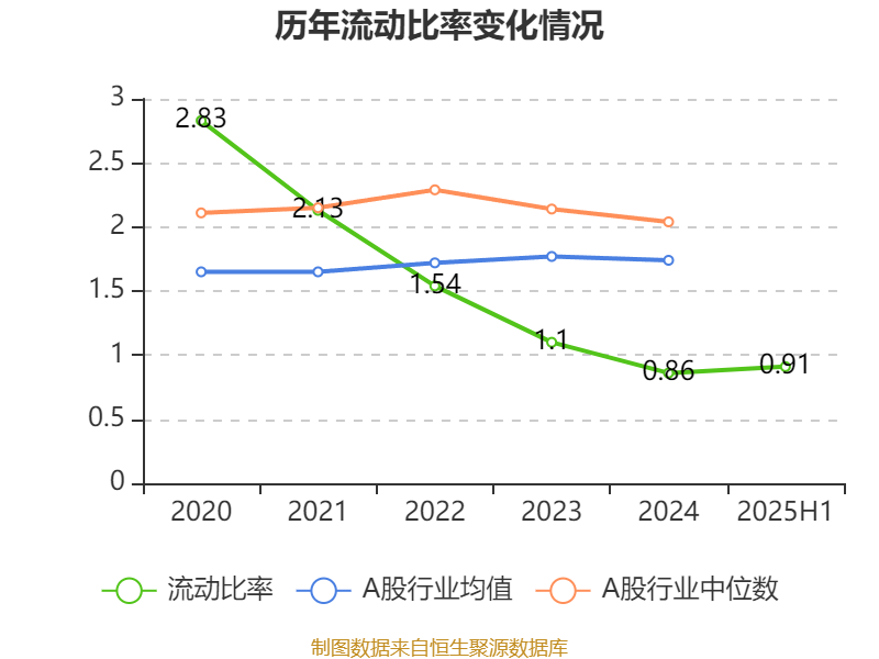 2025年上半年,公司流动比率为0.91,速动比率为0.69。