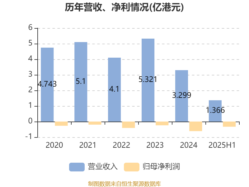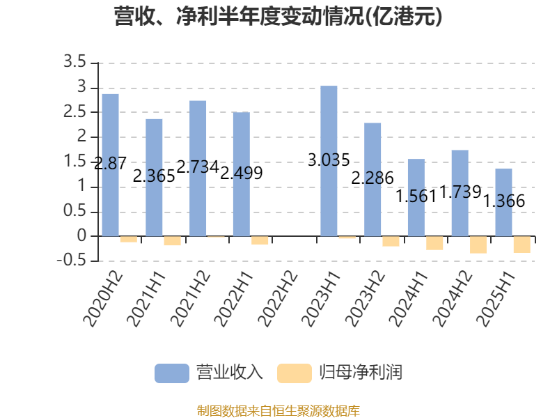 中证智能财讯天大药业(00455)9月26日披露2025年中期报告。报告期内,公司实现营业收入1.37亿港元,同比下降12.45%;归母净利润亏损3323.7万港元,上年同期亏损2723.6万港元;据报告显示,天大药业基本每股收益为-0.0155港元,平均净资产收益率为-6.7%。